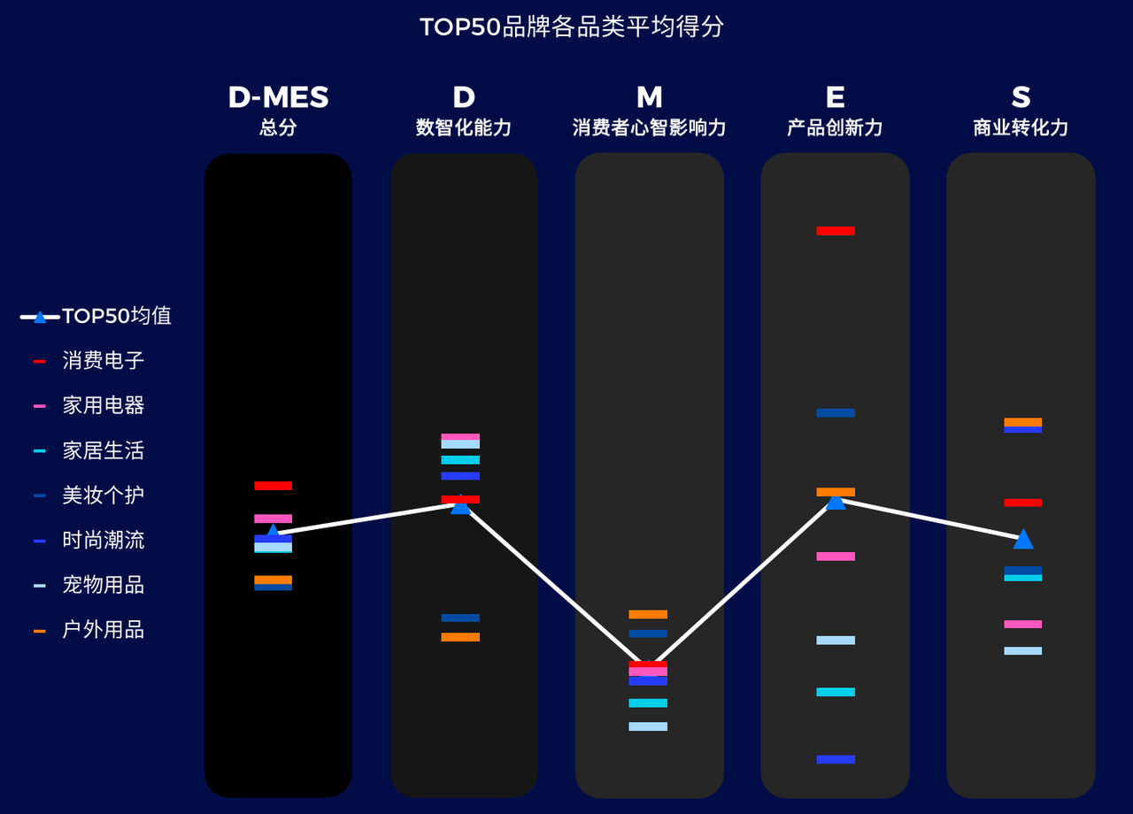 ● 《2023 MeetBrands 榜单》TOP 50 品牌各品类平均得分