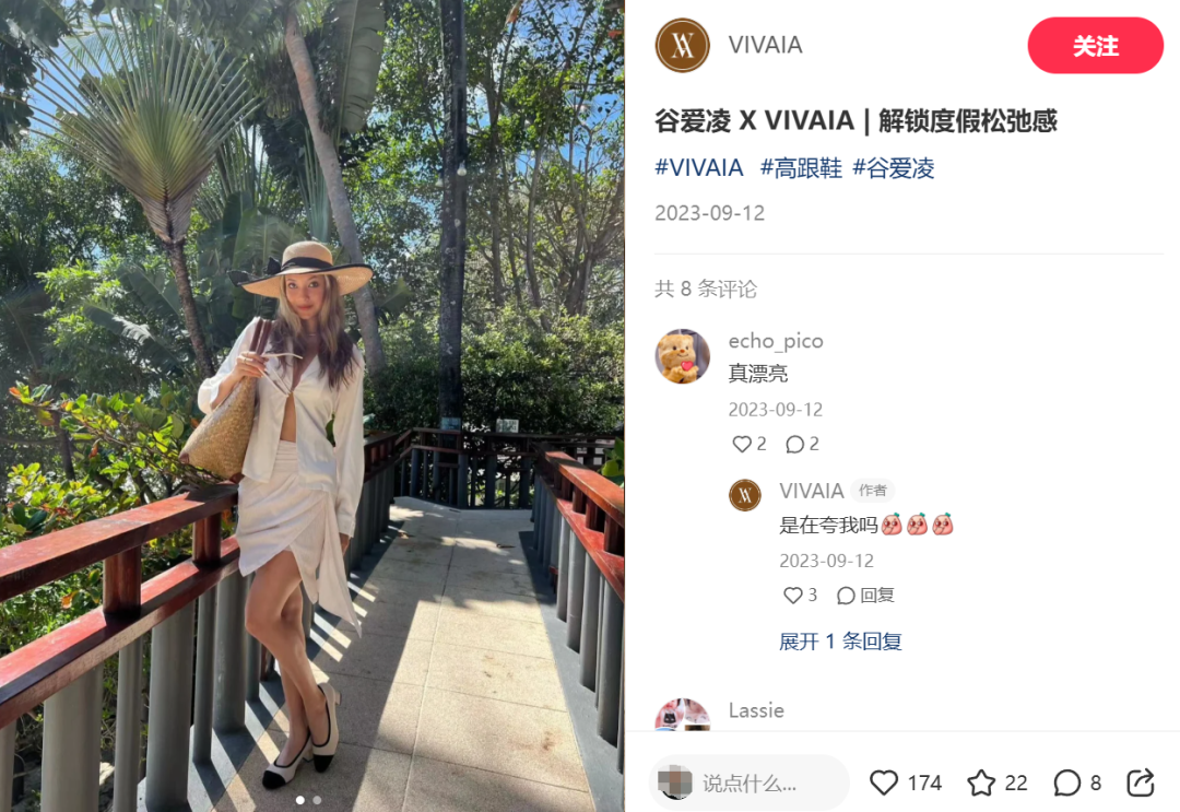 “Instagram女王”赛琳娜·戈麦斯、”白女街拍第一人”艾玛·罗伯茨,还有斯嘉丽·约翰逊、凯蒂·霍姆斯等等大咖,都曾穿着Vivaia出席公开活动。Vivaia的小红书账号也分享过谷爱凌、朴敏英穿自家鞋子出行的OOTD。