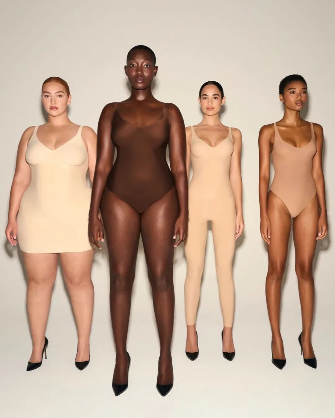 但话说回来,需要承认的是,不论是横跨XXS – XXXXL的尺码区间,还是为了照顾不同肤色需求做到由深及浅的全色系服饰,Skims都精准击中了广大女性近年来在服装消费和健康观念上的痛点。
