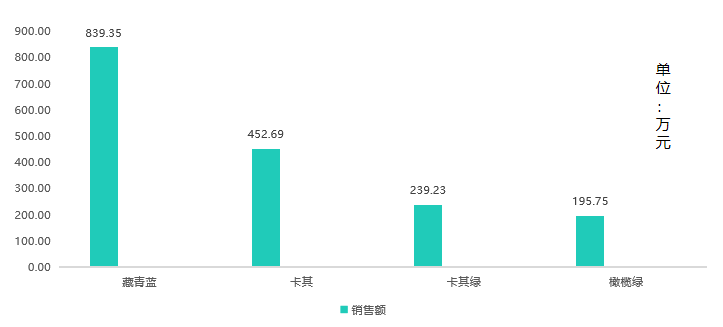 而根据魔镜分析+,安高若受到消费者喜爱的单品的颜色多集中在藏青蓝、卡其、卡其绿、橄榄绿等颜色;山系的风格、接近大地的颜色能够给消费者亲近大自然的感受,因此增加了其销量,使得它们在销售额上相较于其他颜色更高。