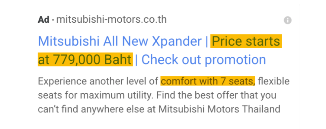 投放广告的朋友们早已有经验,如果把广告的文字高亮,点击率能提升甚至超过十倍。例如,下面的广告就是一个很好的例子