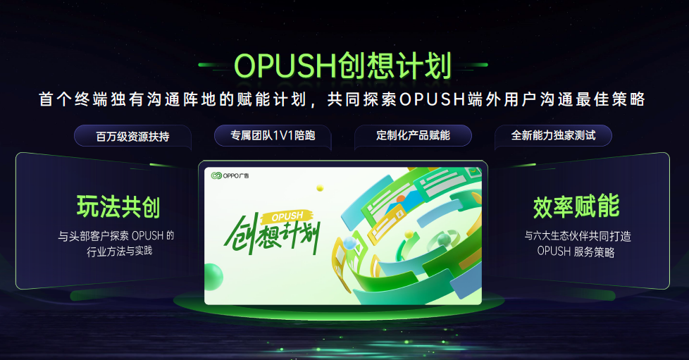 写到这里,有一个劲爆好消息要告诉大家。为了帮助App探索更好的用户沟通方式,OPPO官方开启了首个终端独有沟通阵地的赋能计划——OPUSH创想计划,这个计划将投入大量资源与App共同探索用户沟通的最佳策略。