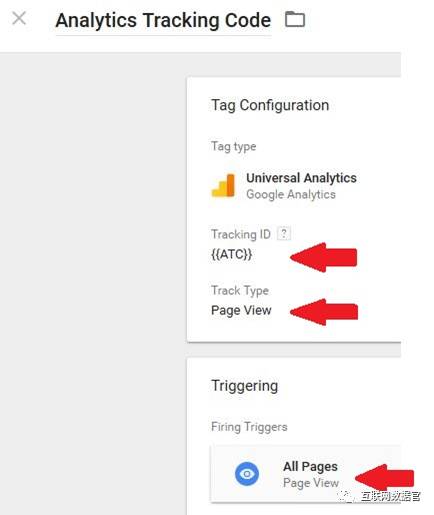接下来,你需要创建能够触发每个页面浏览量的基础页面浏览代码(tag在GTM中文版本翻译成“代码”)。创建与下面相同的监测代码。你要确保复制正确,并且Fire On选项是“所有页面”。
