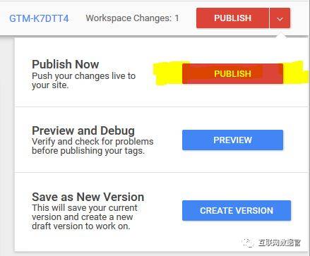 屏幕右上角是发布容器的按钮。 GTM存储所有容器版本的历史,所以如果发布后出现问题,你可以回退。
