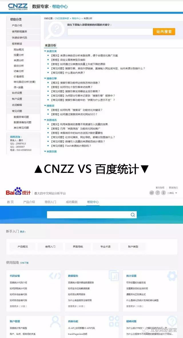 对新手来说,只要能通读一遍“帮助中心”的教程即可解决绝大多数问题。实在不明白的情况下,使用人工客服,CNZZ的人工响应速度较慢(先接入智能客服,再转接人工),而百度统计则是默认联系账户顾问为最高优先级,无在线客服,可以直接致电或发邮件联系,效率较低。