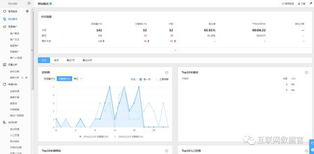 1)趋势分析(可自定义):浏览量(PV)、访客数(UV)、新访客数、IP数、跳出率;