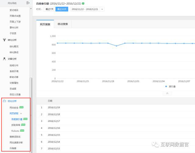 百度统计对比CNZZ最大的优势在于百度的平台力量,在下半年百度统计调整之前,是没有“索引量”和“Robots”之类原属于百度站长的功能的。结合之后,减少了网站分析人员两头跑的情况。