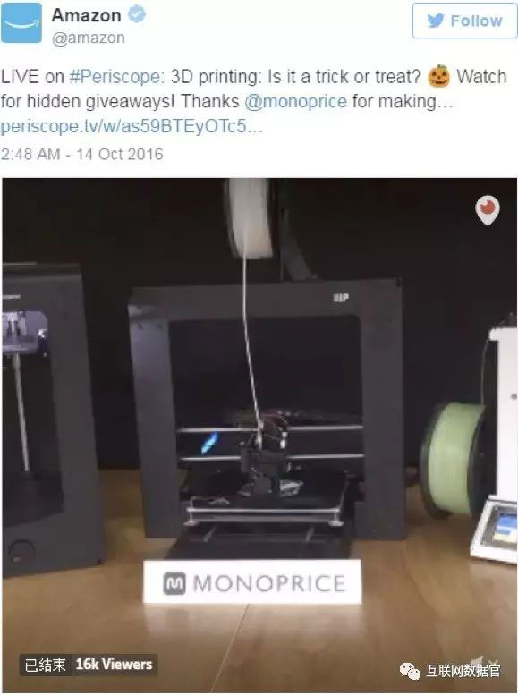 TWEET译文:#Periscope(直播APP)上的直播:3D影印:这是在耍把戏还是在款待?快观看隐藏的抽奖活动!谢谢@monoprice的制作…