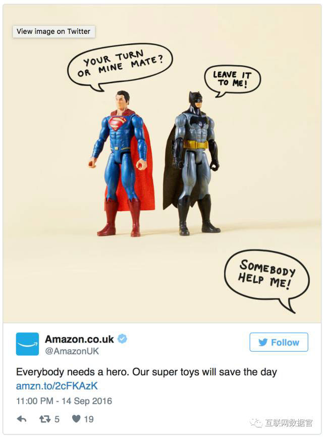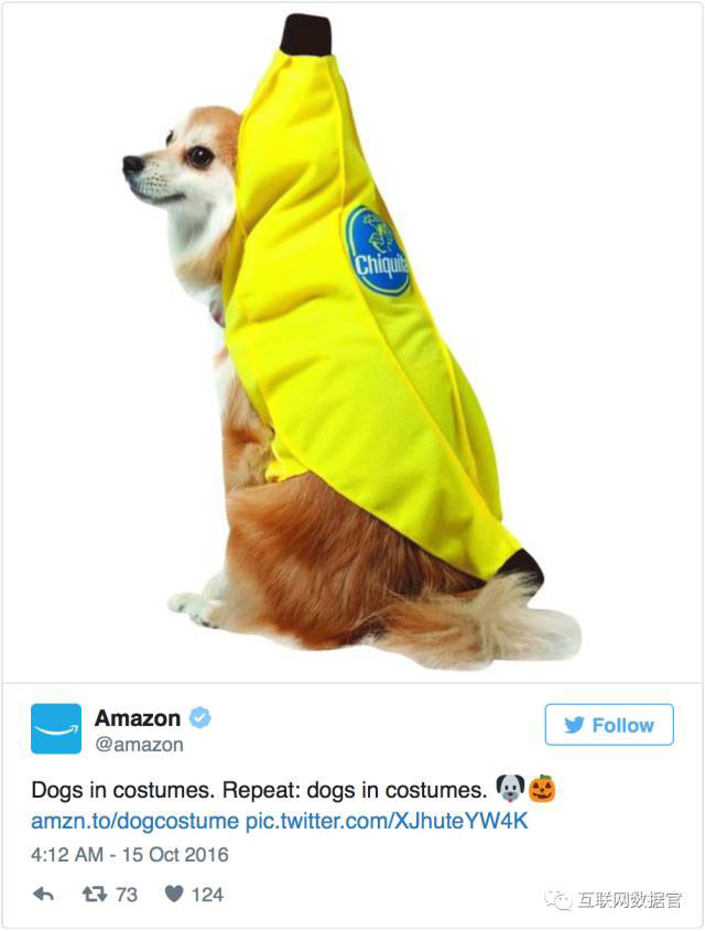 就连穿衣服的狗狗也能成为亚马逊随手拈来的话题和制造售卖的机会。这看起来简直就是一个娱乐账号。而带有娱乐性的推文,应当是所有Twitter营销方案的目标。