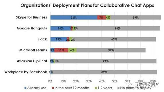 据参与上个月Spiceworks调查的488位IT专家称,到2018年底Teams将超过Slack和Google Hangouts成为紧随Skype之后的第二位最流行的企业级聊天应用程序。