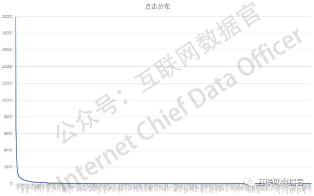长尾模型从词频分布的角度描述了一个SEM账户内的关键词分布状况。这世界上的SEM账户基本上都符合二八甚至一九分布规律。例如下面的这个账户内关键词的分布: