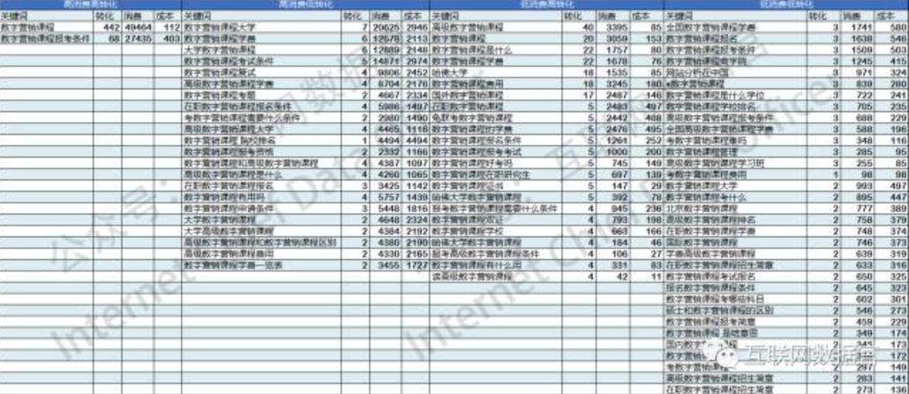 比如,对于教育行业,我无法立即计算出今天投放的竞价最终最终能获得多少的报名,但我可以把今天发生的有效询盘全部记下来,并且对应到相应的关键词。由于拉长时间线之后的有效询盘和最终转化有比较固定的比例,因此利用有效询盘作为替代性的“最终产出”仍然具有分析价值。