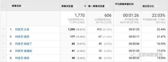 如果把“事件”和“屏幕”的数据结合起来看,一个最简单的洞察就是:被打开最多的频道,其中产生的内容阅读/分享行为也最多吗?如果不是,那么是不是该思考一下原因,或者调整一下频道排列的顺序了?