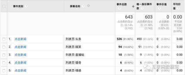 当事件和屏幕都正常发送给GA之后,二者在报告中可以交叉统计。也就是说,小孙可以筛选出“猎奇”频道下发生了什么事件,或者把“分享”事件按频道进行细分,看看哪个频道贡献最大。