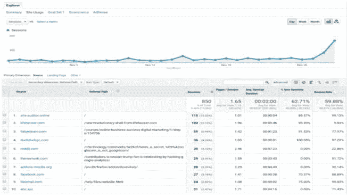 目前有种激增的新型引荐垃圾正在破坏着GA的数据集。这些引荐垃圾的攻击使得许多GA媒体资源中的引荐流量报告变得再无参考价值。对于小型企业网站型而言,这个问题甚至可能会非常严峻,因为它会严重地扭曲会话数和页面浏览次数。