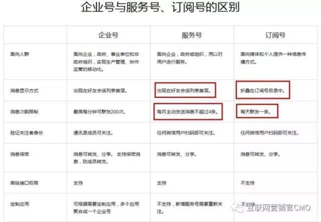 需要注意的是,企业在申请微信公众号时,需要选择是注册服务号还是订阅号,当然还可以选择企业号,企业号主要是供企业内部员工使用,目前已经升级为企业微信。我们重点来说订阅号和服务号的区别,这很关键。