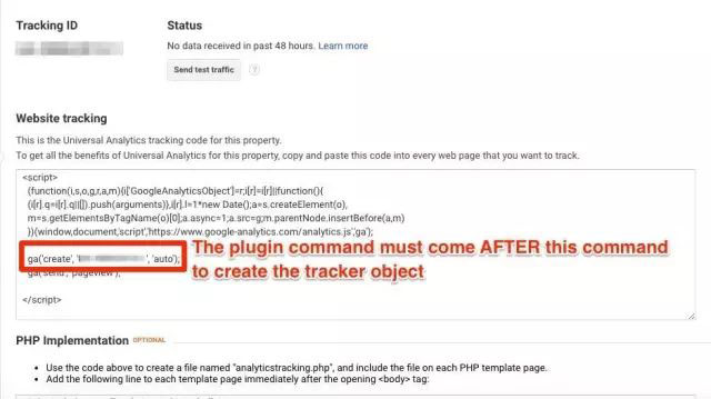 • ga(’create’,’UA-XXXXXXXX-X’,’auto’); 命令在创建跟踪代码时必须先用
