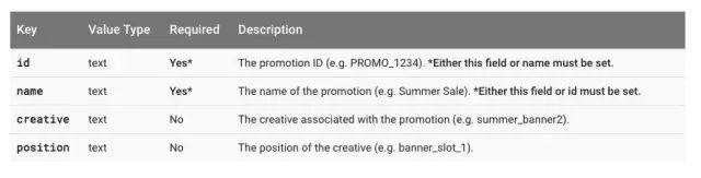 有关查看的促销活动的信息,称为promoFieldObject。