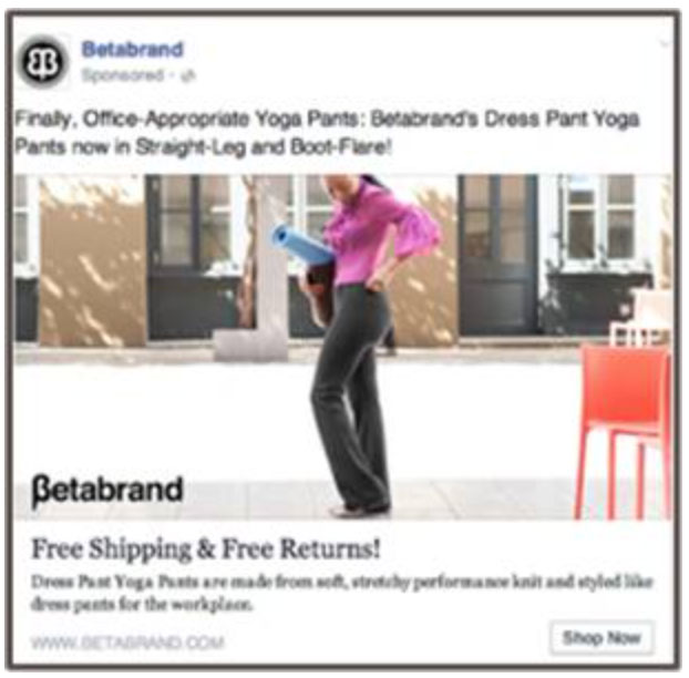 但是对于Beta品牌和The Summit呢?Ritika从来没买过他们的东西也没访问过他们的网站,但是她过去买过类似的东西。她怀疑这两个公司是通过facebook的相似受众功能定向到她的。不过她非常喜欢这些广告,而且以后很有可能会从Beta品牌买一条裤子。