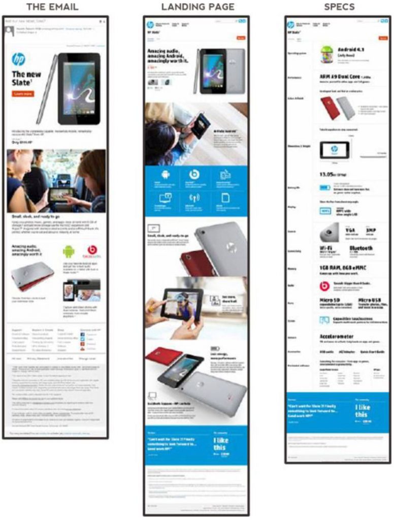 在这个活动中,从发现到转换的路径是畅通无阻的,即消费者从头到尾需要采取的步骤是有道理的。 HP一直在关心用户心理,充分了解受众对转化渠道中每个触点的回应。 HP在整个用户流程中不会只专注于电子邮件而是在整个用户流的大背景下审视电子邮件的重要性。这个过程对营销自动化过程至关重要。