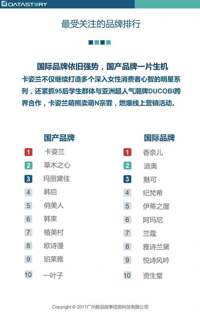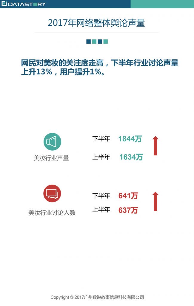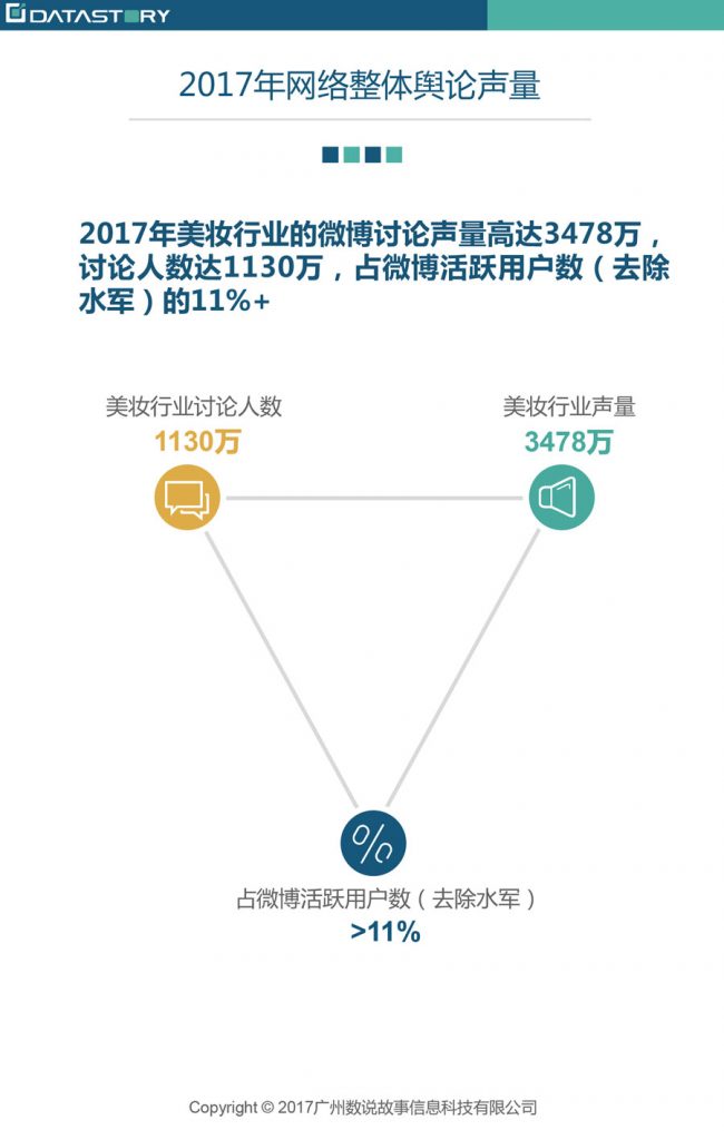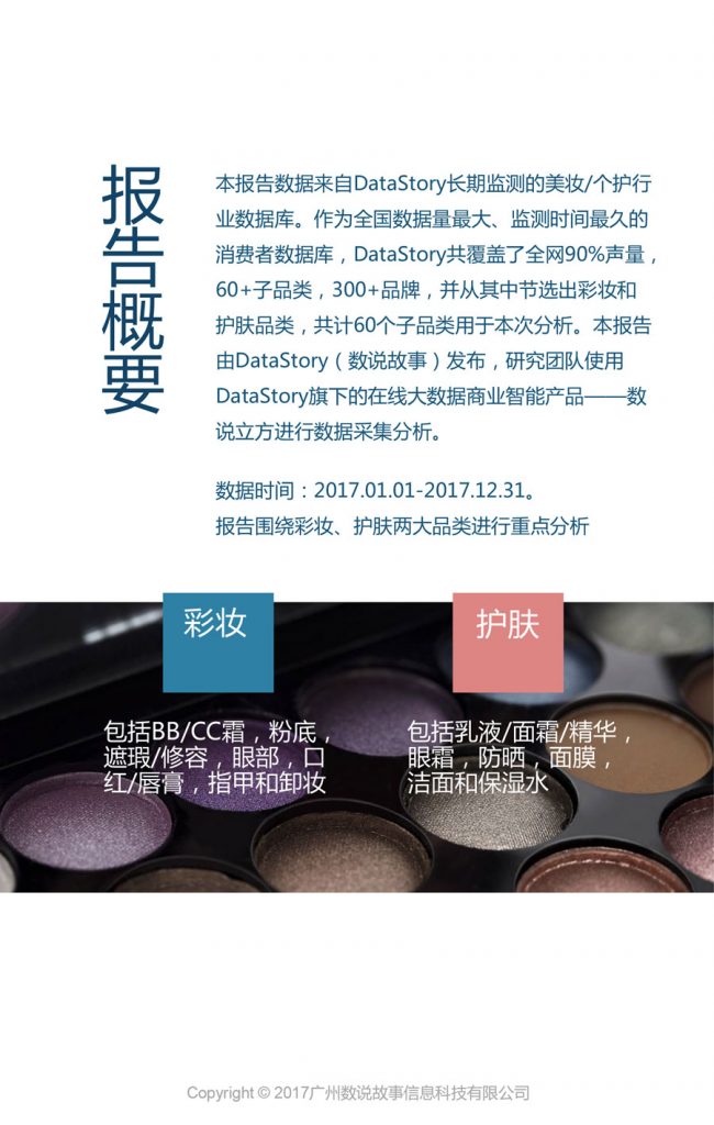 该报告分析使用DataStory旗下互联网大数据商业智能分析工具“数说立方”进行数据采集分析,深入洞察美妆行业,重磅发布《2017年美妆行业研究报告》。
