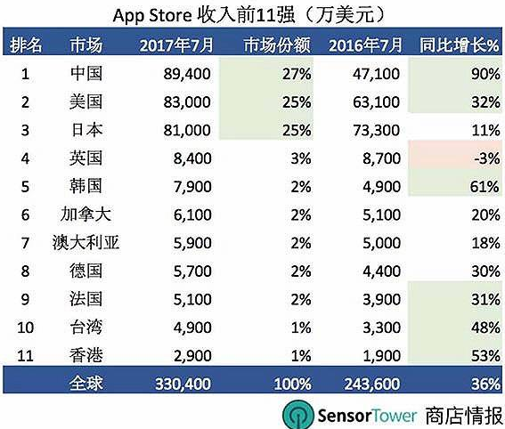 根据市场调研公司SensorTower的数据,中国App Store市场已经超过美国日本,成为全球最大市场。