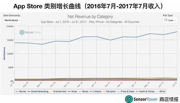 从类别增长曲线上看,手游是AppStore增长的主要来源。