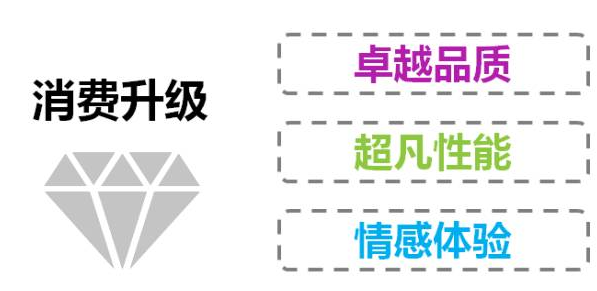 在消费升级的大背景下,消费者需要被满足的不仅仅是对卓越品质和超凡性能的需求,还有精神层面对情感体验的需求,这三要素成为推动消费升级的重要维度。