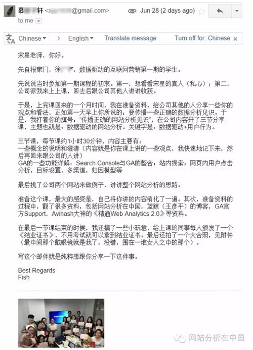 认识宋老师是在WAW沙龙上,当时就觉得宋老师讲的东西很不同,理念和思路都很有趣也有深度。更多朋友认识宋老师是因为他的博客网站分析在中国,大牛的博客。个人认为如果没有太多时间阅读他博客上的所有文章,那么他的这个培训一定不要错过。培训中还覆盖了很多博客还没有写到的新的互联网情况,比如移动的分析,微信的分析,程序化营销等等。宋老师风趣幽默,虽然课程是两个整天,知识点很多,但总体听下来感觉还是比较轻松的。