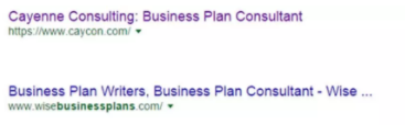 假设你正在搜索“商业计划顾问”,而你所看到的基本上都是意味着相同的内容,只是带有不同关键字的标题。现在,将其与另一个加载正确关键字的页面,该页面能够取悦潜在购买者和搜索引擎。你会点击哪个页面标题呢?
