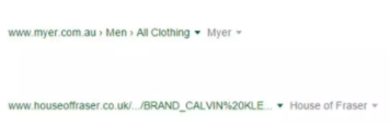 当然,第一个——很明显,点击链接后,你将直接登陆一个电子商务网站的男装区。在另一方面,第二网址看起来像是带你进入到一个品牌页面——并不一定能够提供你要找的衬衣。(第二个网址并不能说明他们是否销售男士或女士的衬衣)