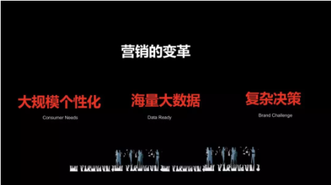 那么我们看当今世界,营销在发生什么样的变化,我觉得变化挺大。可能十年前15年前,那时候脑白金可以通过一个中央台的广告刷屏,很快就能占领口碑,但是今天的话在这种碎片化的这种社会上,每个人都用不同的载体,在不同地方接受不同的信息,这种情况怎么去影响这些人?这是非常困难的一件事。比如说大家都有装一些新闻资讯类的软件,但是看到的内容全然不同。现在有了汽车飞机高铁,每个人去的地方也越来越分散。以前的话可能假期在家看电视,但是现在的话大家有很多选择。所以现在出现了大规模的个性化的这种情况,个性化是整个社会在未来的一个必然的结果。现在光电视,有几百个综艺节目,这时候怎么去找到与你的品牌共鸣的机会,是非常难的。