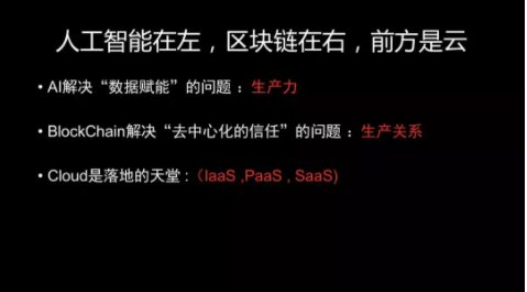 刚才讲的人工智能是解决生产力的问题,是你有数据,那么我用人工智能可以把这个事情做得优秀有效。另外一个问题是生产关系的问题。市场管理上现在其实出现了一个非常创新,也是大家很关心的区块链和区块链技术。有句话这样说: