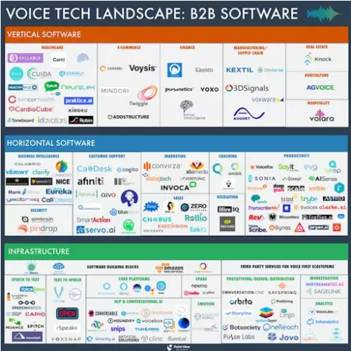Point Nine Capital的团队汇集了150家B2B语音科技初创企业的生态图,让你了解这一领域正在进行的大规模创新: