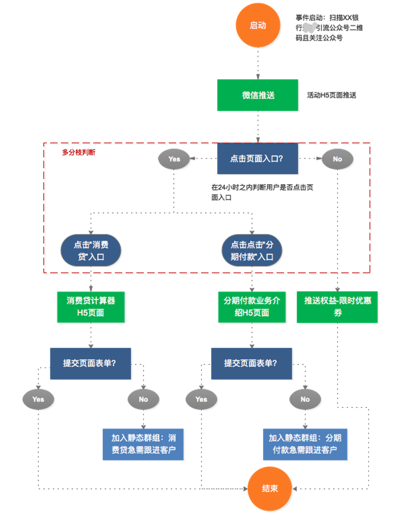 图:A银行基于某次贷款产品推广的营销自动化流程
