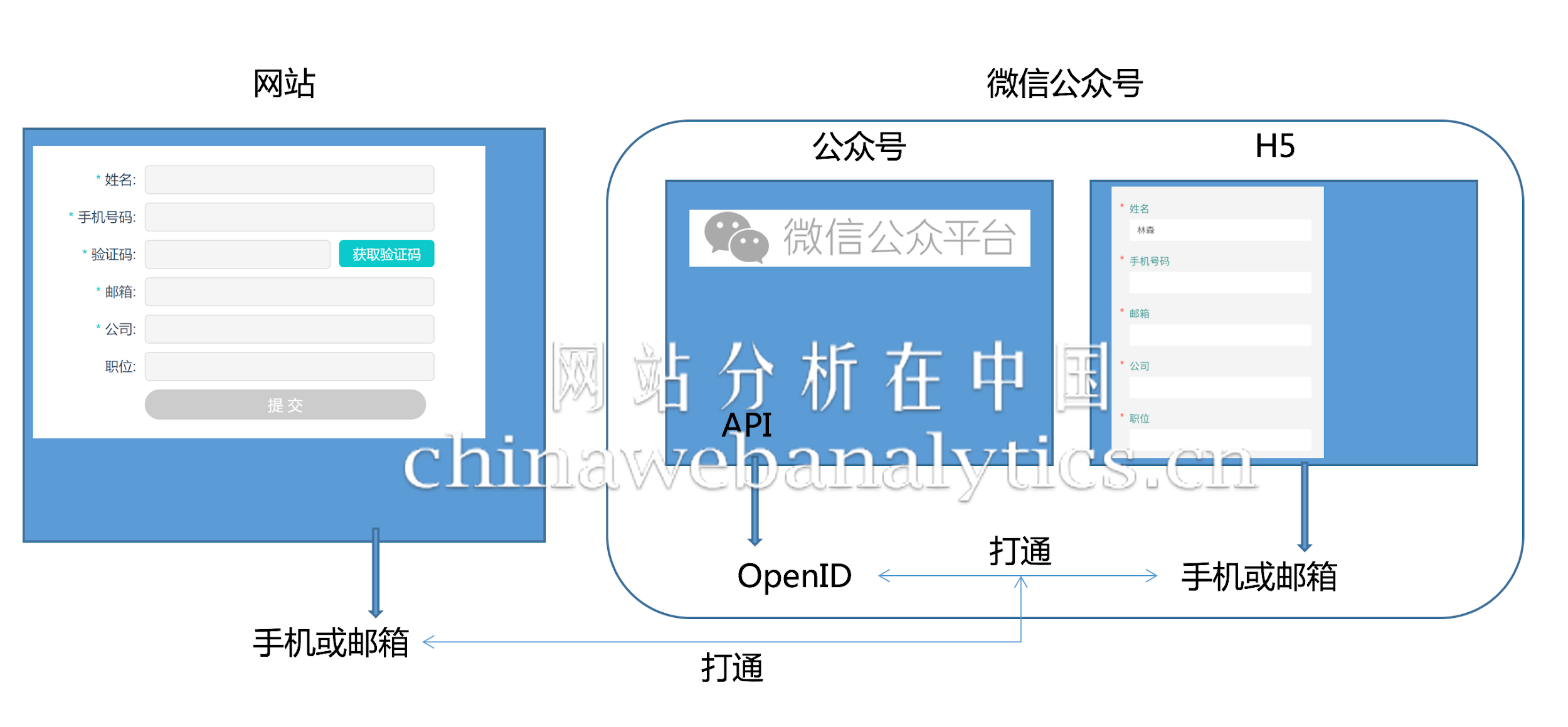 这时候我们需要一些运营的技巧,我们需要引导用户在网站和公众号里提交手机号或者邮箱之类的ID。可能你会觉得麻烦,从我们实际操作的经验来看不难,看运营水平了。