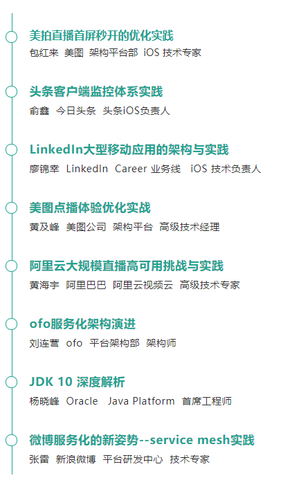 本次大会共有 5 大板块方向,20 场技术专题,70 个互联网架构案例。最新最全的日程安排如下: