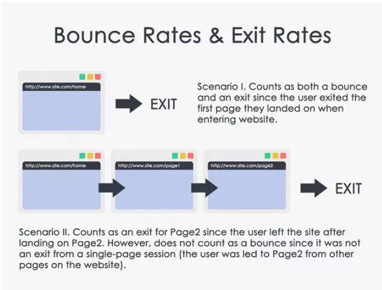 如果有人做出一个首次行为,例如一次网站访问,但在30分钟内没有进行再次的互动(浏览其他网页、点击CTA等等),这会被认为是一次跳出。