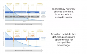 所谓软件设计,过去被认为都是专家才能完成的,必须要学程序语言,编程语言等等。但是,所谓的「无密码平台」最开始在美国出现,然后全世界都开始运用这种平台,越来越多的营销专业人士或者是技术人士,已经可以利用当地的营销系统来建立一些应用平台,进行客户服务或内部运营,一些广告主也开始利用这个平台,他们成为了「超级用户」。