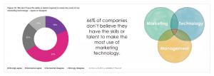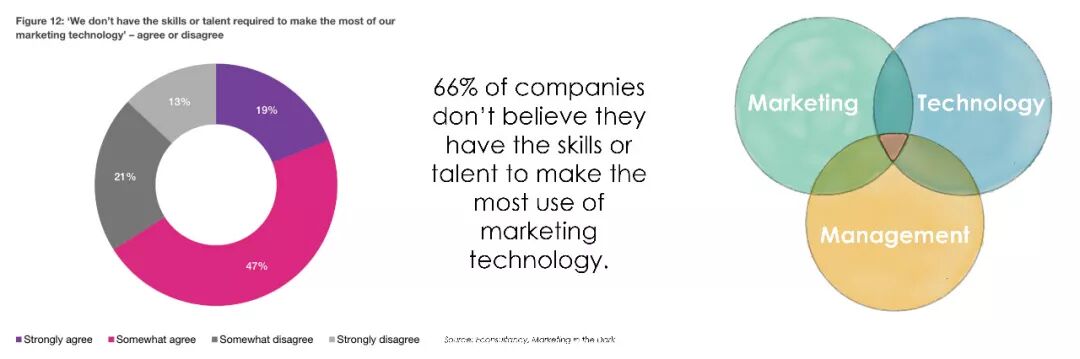 同时,另一项调查表明,66%的全球企业并不认为他们有足够的技能或是人才,来最大程度的利用营销技术,以及营销技术可以带来的种种潜力。