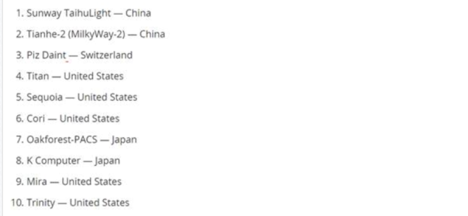 - 计算能力: 全球运算最快的两部电脑都在中国