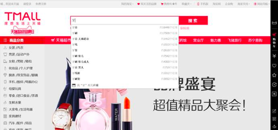 阿里巴巴的电商平台包括了一系列基于AI的功能,特别是机器学习和自然语言处理。嵌入在搜索内的推荐系统及“自动补全“功能,可帮助用户发现他们并没有留意到但又可能需要的产品或服务,以简化购物的流程。除此之外,阿里巴巴虚拟店铺上的信息会基于个体用户不同的性格和喜好(根据用户之前的浏览历史和购物行为)而定制化显示。