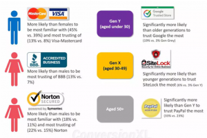 根据你的目标受众,你可能希望通过研究报告来展示哪些人群对哪些标志最信任。