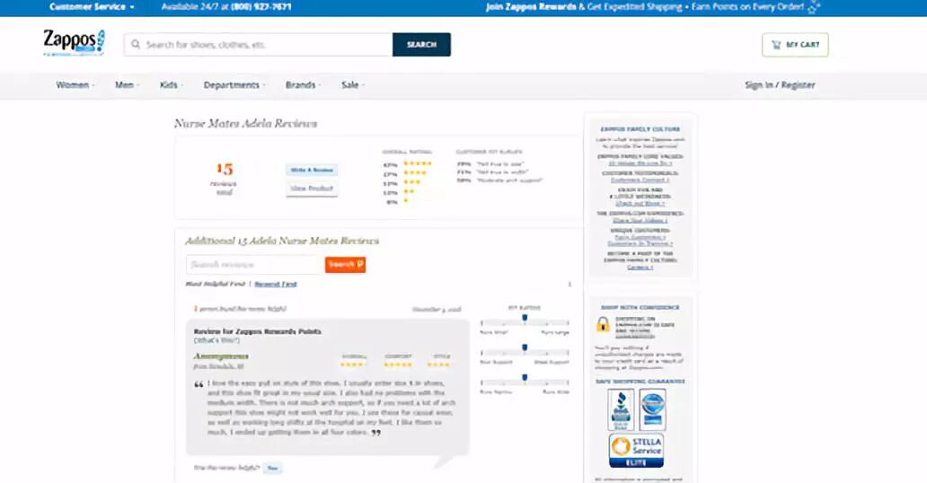 以客户服务而闻名的Zappos,在每一款产品中都有突出的评论。