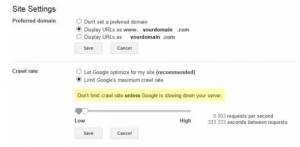 在Google Webmasters中标记你选择的URL版本。转到页面右上角的Settings选项,选择“Site Settings”,然后选择正确的URL格式。现在,当搜索引擎遇到一个链接到你网站的非www版本的网站网址时,你的首选选项是www,链接URL将被替换为www开头的网址样式。