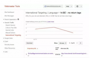 另一个错误是反链错误:这些来自指向文档语言注释的结果之间没有形成相互引用。使用Google Search Console > International Targeting来识别这些错误。这些注释需要通过其他页面来确认;也就是说,如果页面A链接到B,那么B必须链接回A。