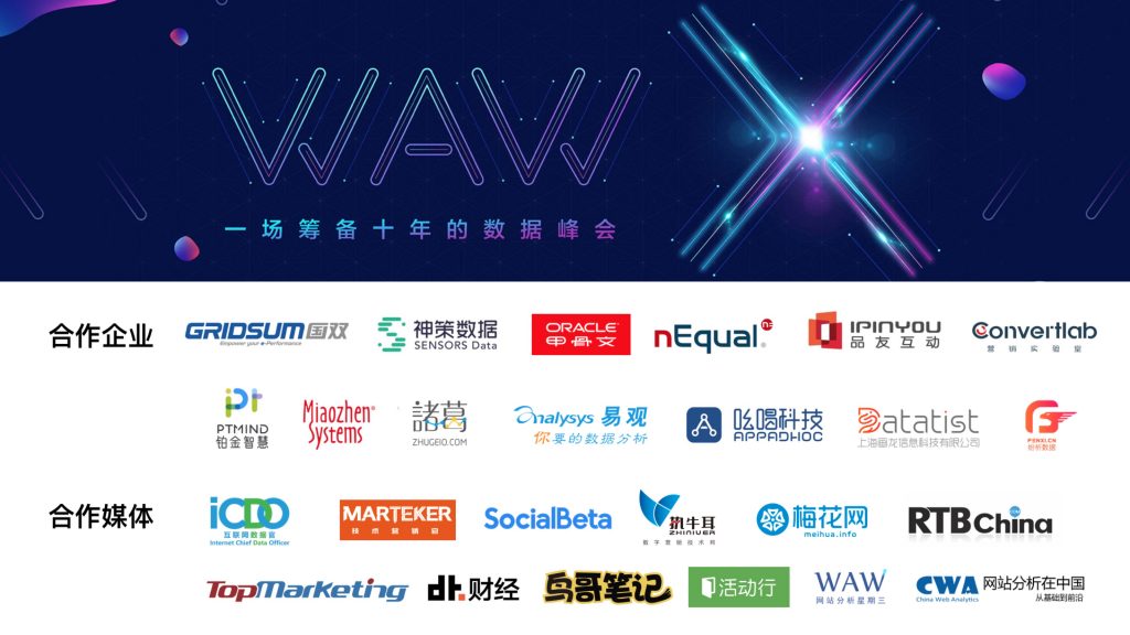 WAW,Web Analytics Wednesday网站分析星期三,2008年1月宋星老师和Florian Pihs(德)组团创立的数据沙龙,一不小心从2008走到2018,近百场数据沙龙,成为数据营销与运营圈专业与干货的代名词。