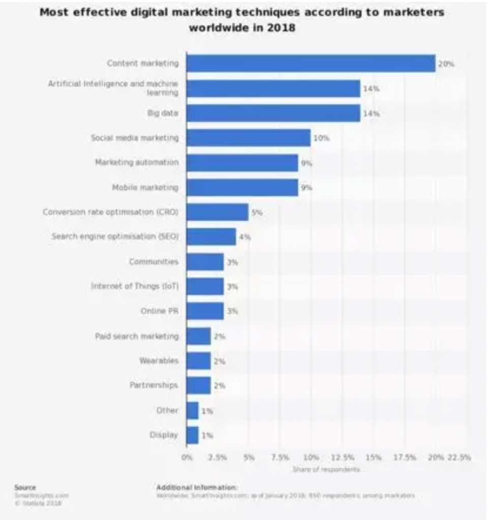 10%的专业营销人员将社交媒体营销作为最可能在2018年获得丰厚回报的策略。