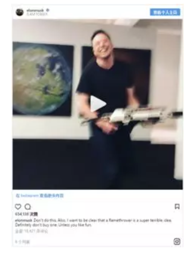 看看他在Instagram上发布的一篇文章,说的是现在臭名昭著的“不是火焰喷射器(Not a Flamethrower)”。“他以同样的高超的智慧来吸引用户。(没有海关会通过一款叫做Flamethrower(火焰喷射枪)的产品,所以他们决定将其更名为Not a Flamethrower(不是火焰喷射枪))