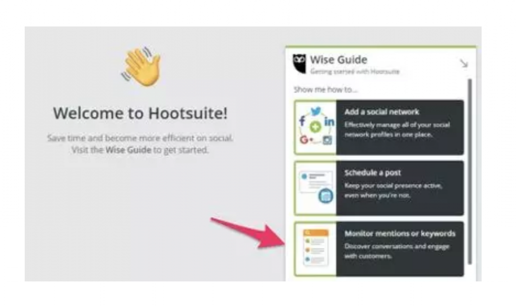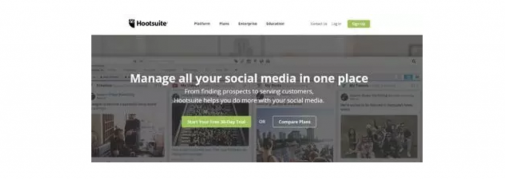幸运的是,有很多很棒的工具可以帮助你跟踪社交媒体上的对话,并参与其中。Hootsuite是最优秀且免费的工具之一。